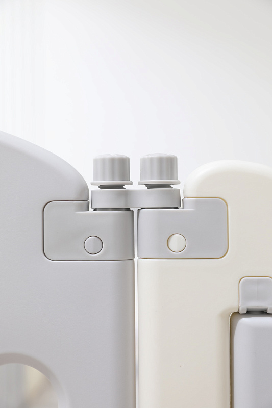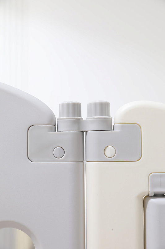 Конструкция пластикового манежа для новорожденных 0+ включает секции, которые снабжены надёжными присосками, обеспечивающими дополнительное сцепление с поверхностью пола, предотвращая скольжение.