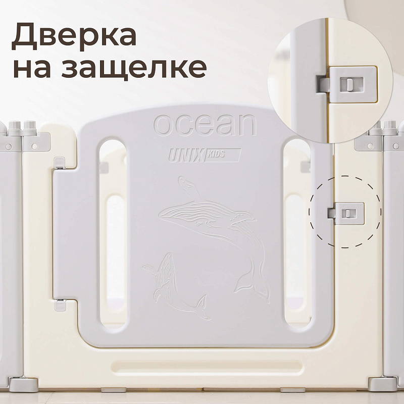 Манеж детский напольный складной UNIX Kids Ocean имеет универсальные размеры идеально подходящие как для малышей, так и для небольших питомцев. Внутри просторно и комфортно, ребенок сможет свободно играть и ползать, исследуя окружающее пространство. Входная секция оборудована удобной дверцей на надежной защёлке, позволяющей взрослым контролировать доступ внутрь, не беспокоясь о возможном выпадении ребёнка наружу.