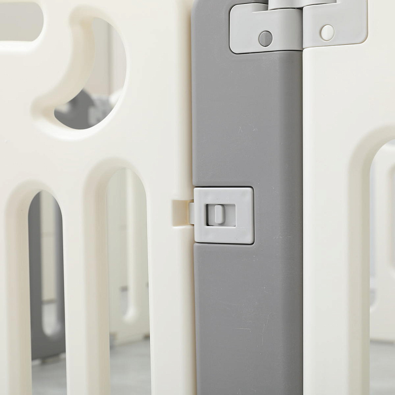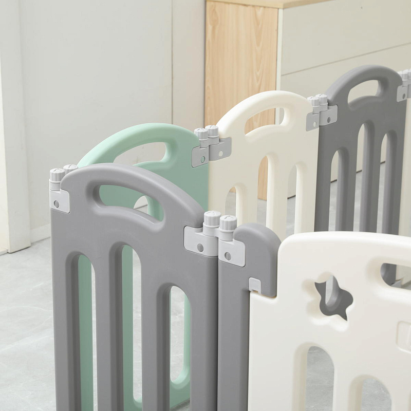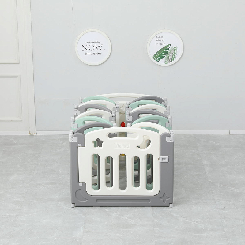 Легко хранить и перевозить. Манеж складывается за мгновение и уже готов для перевозки. Поднимите соединительные элементы вверх и сложите манеж, затем опустите их для фиксации.