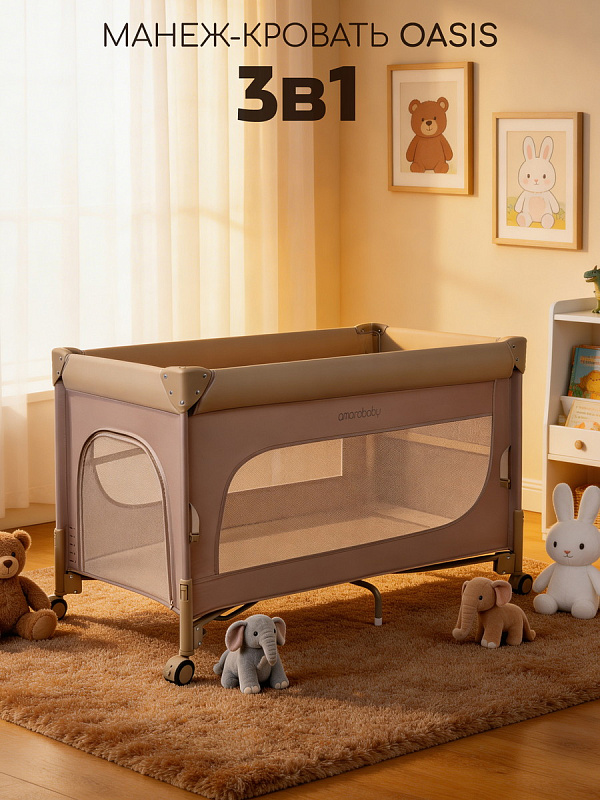 Манеж-кровать Amarobaby Oasis прямоугольный мокко