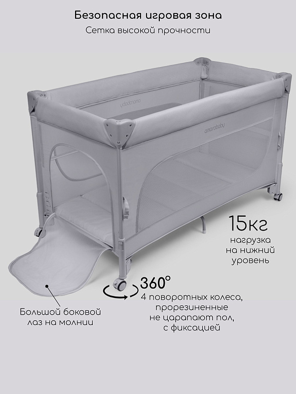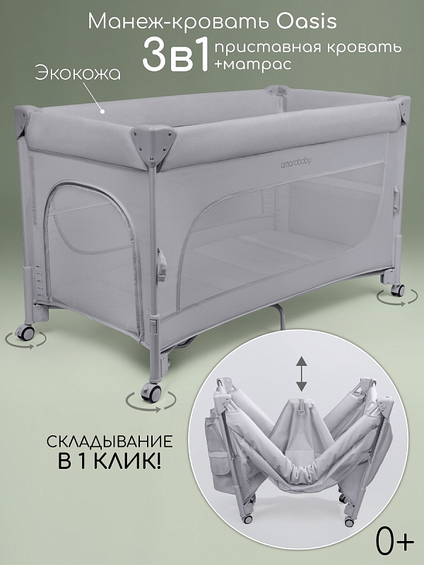 Манеж-кровать AmaroBaby Oasis станет главным помощником в путешествиях и дома. Главное преимущество– это его невероятно легкое складывание и раскладывание: до компактных размеров для удобного хранения или транспортировки, а затем так же просто разложить, когда вашему малышу потребуется безопасное и уютное пространство. Манеж для детей продуман до мелочей и подходит для разных этапов роста ребенка.