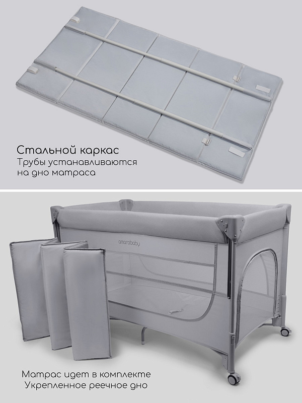 Манеж-кровать Amarobaby Oasis прямоугольный серыйНет оценокХарактеристики