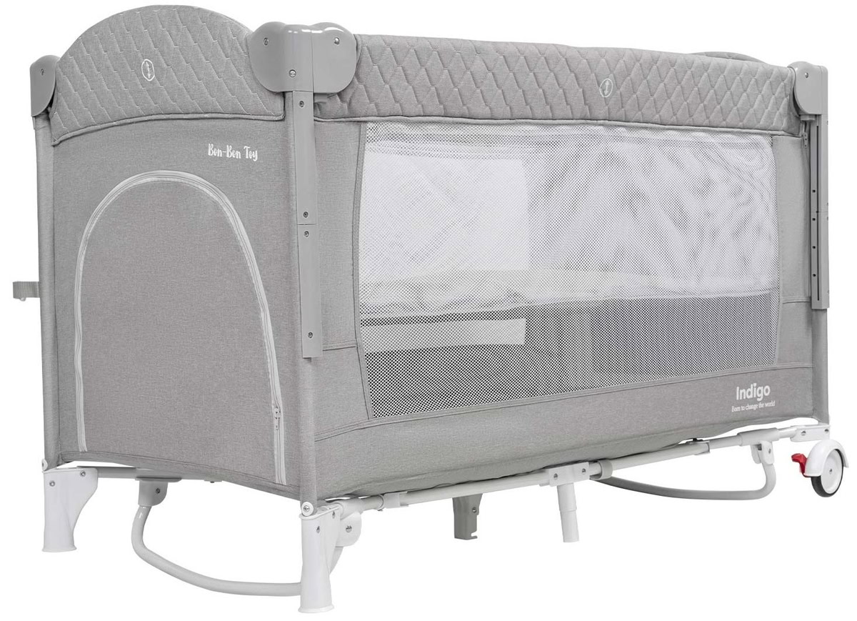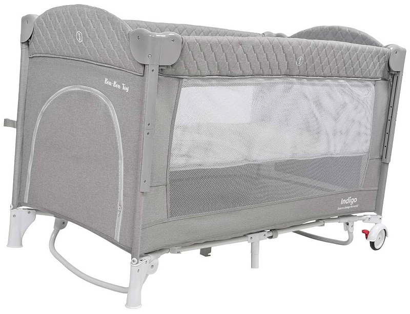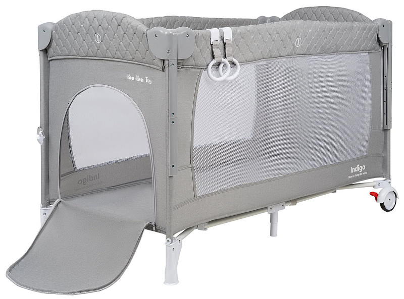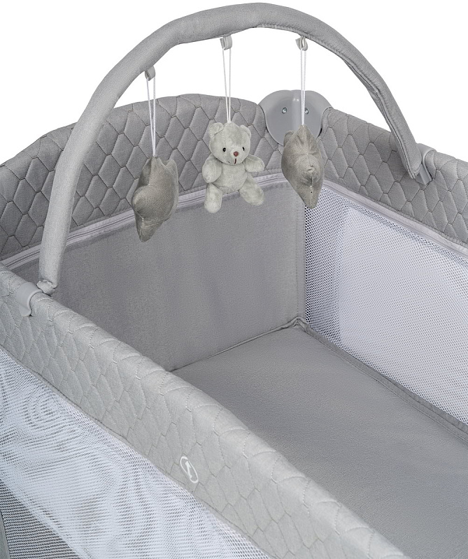 Манеж-кровать Indigo Bon-Bon Toy 2 уровень с подвесными игрушками светло-серый