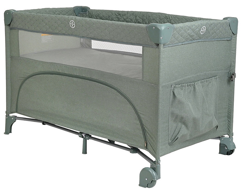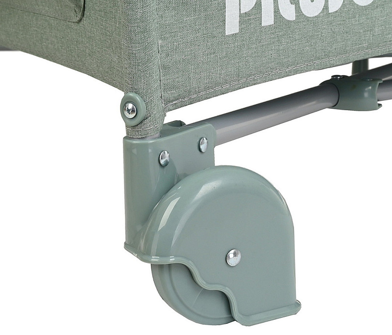 - 2 колеса с фиксаторами делают удобным перемещение манежа-кроватки по дому