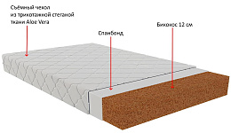 Основой матраса является 12-ти сантиметровый слой бикокоса и слой спанбонда - тонкого нетканого материала, изготовленного из полипропиленового волокна по технологии термоскрепления.