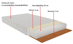 С одной из сторон матраса расположен слой бикокоса (1 см), а с другой слой латекса (1 см).