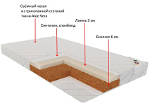 Основой матраса Vikalex Венеция 125х65х10 см является 6-ти сантиметровый слой бикокоса. С другой стороны расположен слой натурального латекса толщиной 3 см. В составе матраса также присутствуют тонкие слои синтепона и спанбонда.