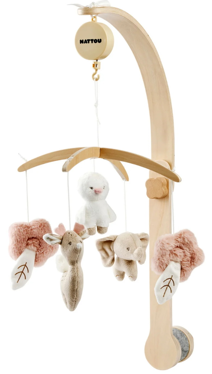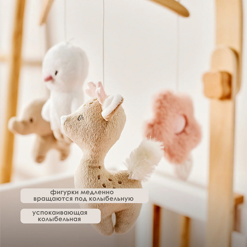 Деревянный мобиль от Nattou привнесет в детскую комнату спокойствие и волшебство. Мягкие плюшевые фигурки медленно вращаются под колыбельную, успокаивая и стимулируя развитие малыша. Это зрелище не только стимулирует слух, но и любопытство и воображение. Стильный аксессуар, идеально подходящий для размещения над кроваткой или манежем, создающий ощущение безопасности и спокойствия. Идеальный подарок для малыша в первые месяцы, полные открытий.