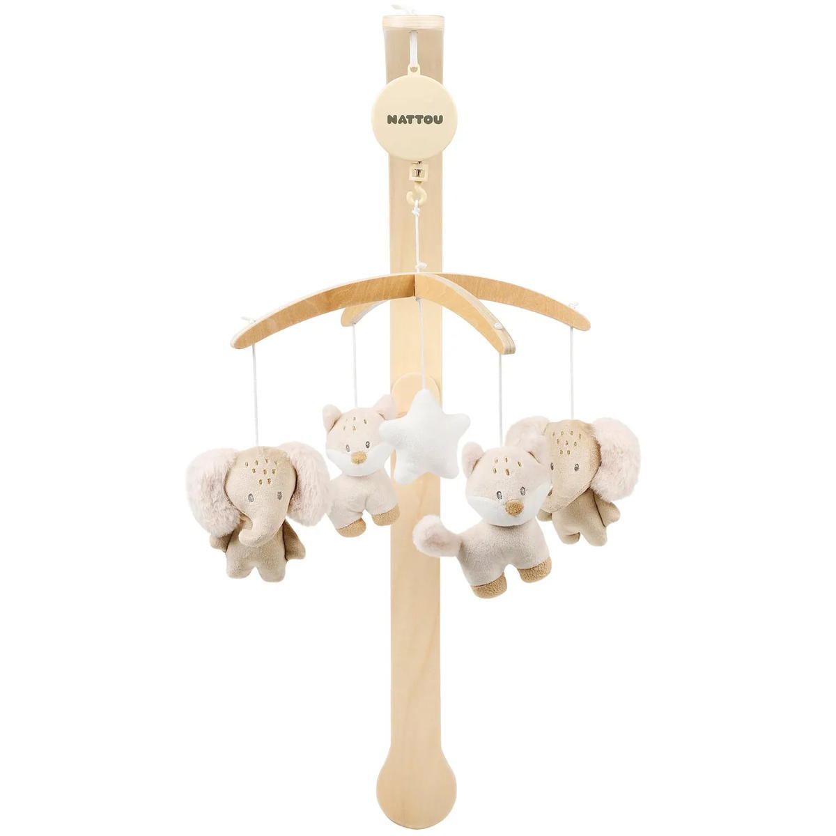 Мобиль Nattou Flo, Ernest & Oli Лиса, Лев и Слоник с деревянным держателем 682268