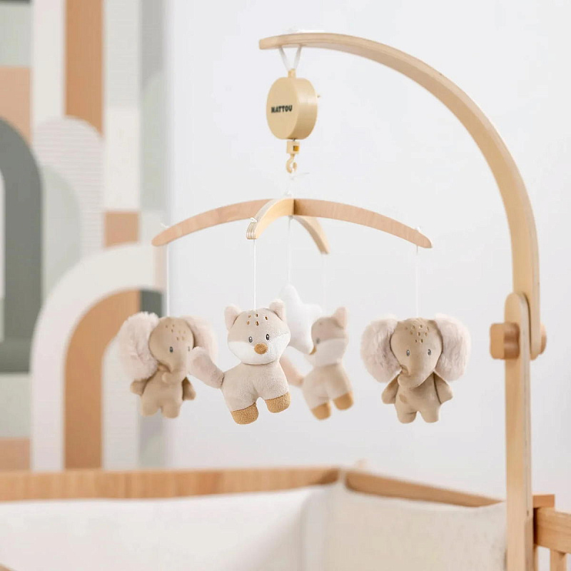 Пусть ваш малыш наслаждается успокаивающими звуками музыкальной карусели, пока слоники и лисички плавно вращаются. Благодаря этим милым фигуркам карусель не только привлекает внимание в спальне, но и развивает слуховое восприятие вашего малыша благодаря встроенной музыкальной шкатулке, которая воспроизводит нежную мелодию «Ла-Ла-Лей». Все фигурки можно снять и постирать в машинке.