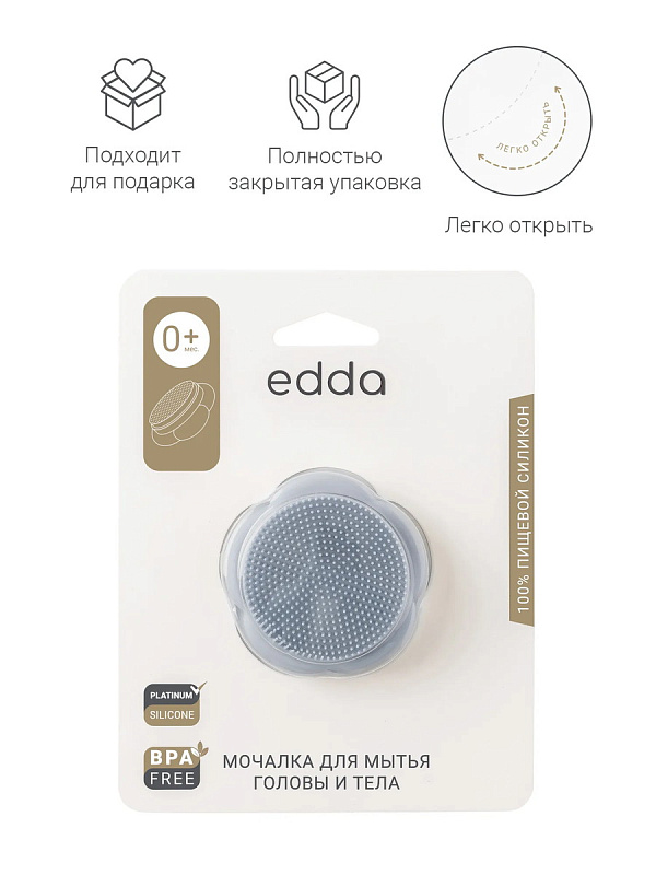 С щеточкой-мочалкой edda купание малыша станет приятным ритуалом. Изготовленная из премиального силикона, она объединяет три полезных предмета в одном: мягкую расческу, практичную мочалку и расслабляющий массажёр.