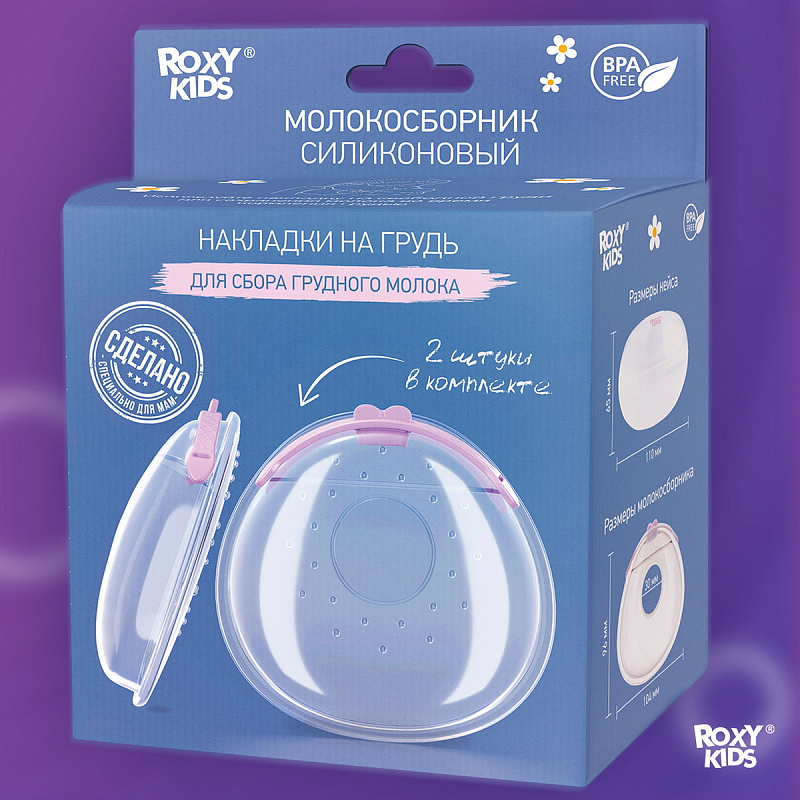 Молокосборник Roxy-Kids с заглушкой, в футляре, 2 шт RCOL-001-V сиреневый