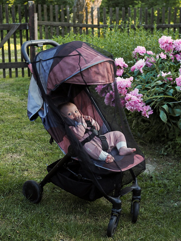 Москитная сетка на коляску — идеальное решение для защиты ребёнка от насекомых. Сеточка выполнена из очень мелких ячеек и защищает от комаров, мух, ос. Аксессуар незаменим во время поездок в деревню или на природу, прогулок у водоёмов, в парке. Благодаря мелкому плетению сетки, её можно использовать для защиты малыша от пуха, который может стать причиной сильных аллергических реакций дыхательных путей. Сетка прочная и эластичная, удобно одевается на любую типовую люльку или прогулочную коляску. Допускает стирку при умеренной температуре. Швы выполнены аккуратно, поэтому она не расходится и не рвётся. Компактные размеры позволяют брать её с собой на прогулку — сетка не займёт много места в сумке и в нужный момент будет под рукой. Сетка складывается в компактную сумочку и благодаря липучке может крепиться на раму коляски.