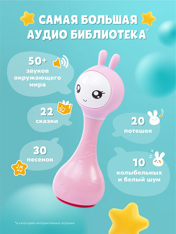Меня зовут Умный Зайчик alilo, и я незаменимый помощник для мамы и лучший друг для малыша. Я познакомлю малыша с миром звуков и цветов, буду рассказывать сказки и стишки, петь песенки и сладкие колыбельные. Уже десятки тысяч родителей считают, что я один из самых лучших и полезных подарков для ребёнка.