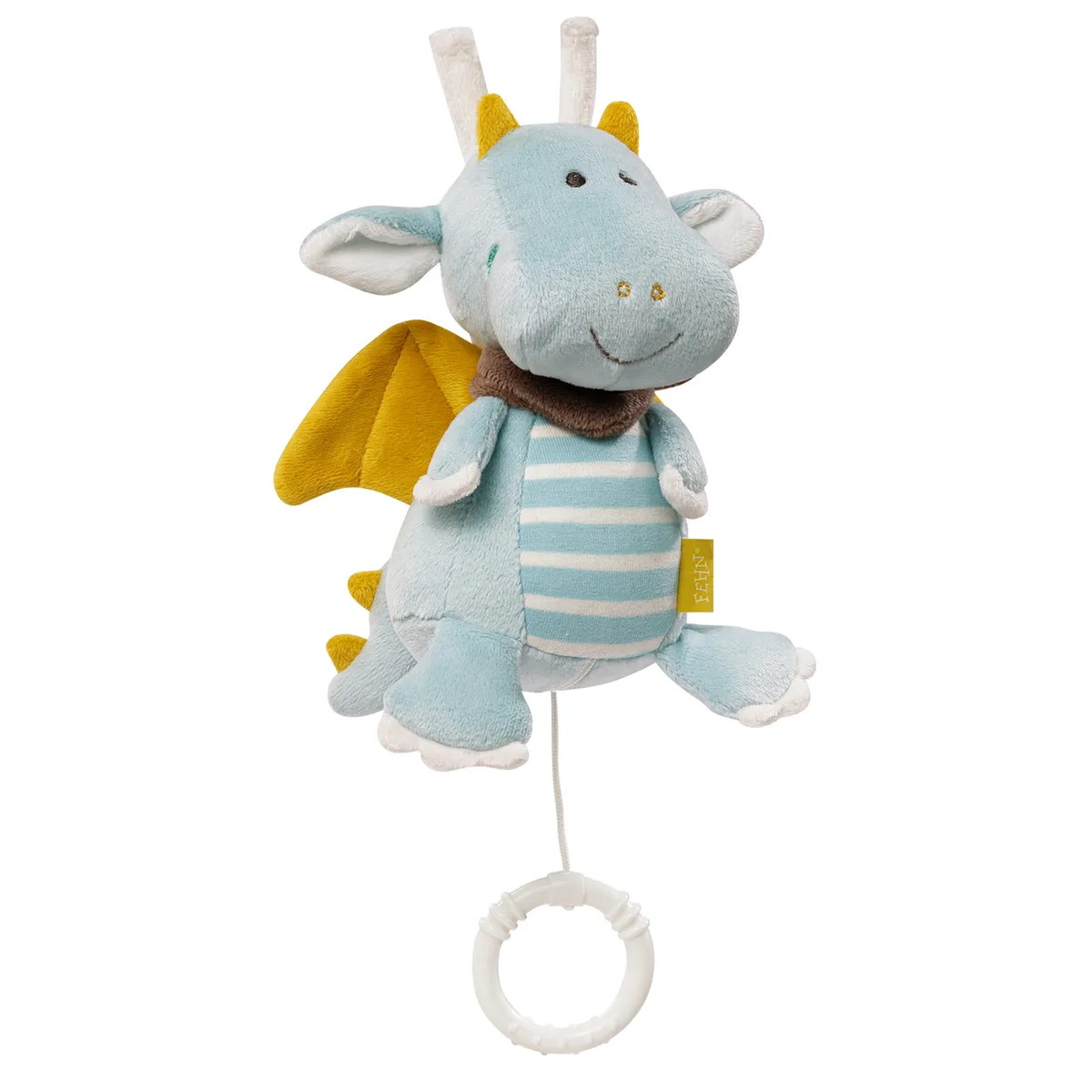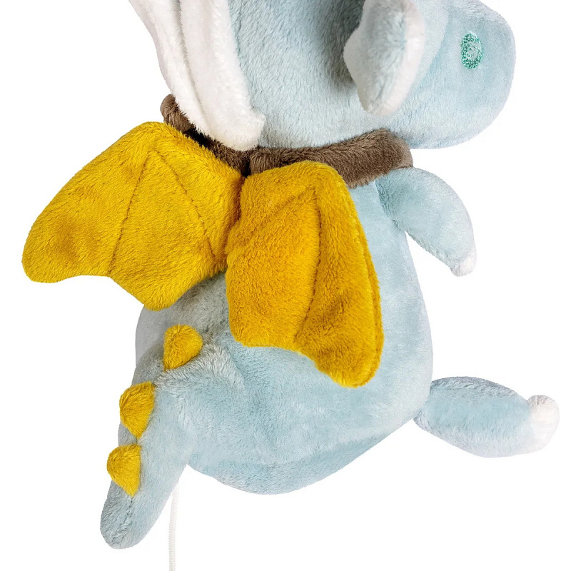 С помощью удобных завязок дракона можно прикрепить к кроватке, автокреслу или ручке коляски. Мелодия поможет успокоить ребенка в разных ситуациях. Механическая музыкальная система спрятана внутри игрушки. Её легко достать, расстегнув молнию.