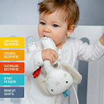 С помощью удобных завязок слоника можно прикрепить к кроватке, манежу, автокреслу или коляске. Мелодия поможет отвлечь и успокоить ребенка в разных ситуациях. Механическая музыкальная система спрятана внутри игрушки. Её легко достать, расстегнув молнию.