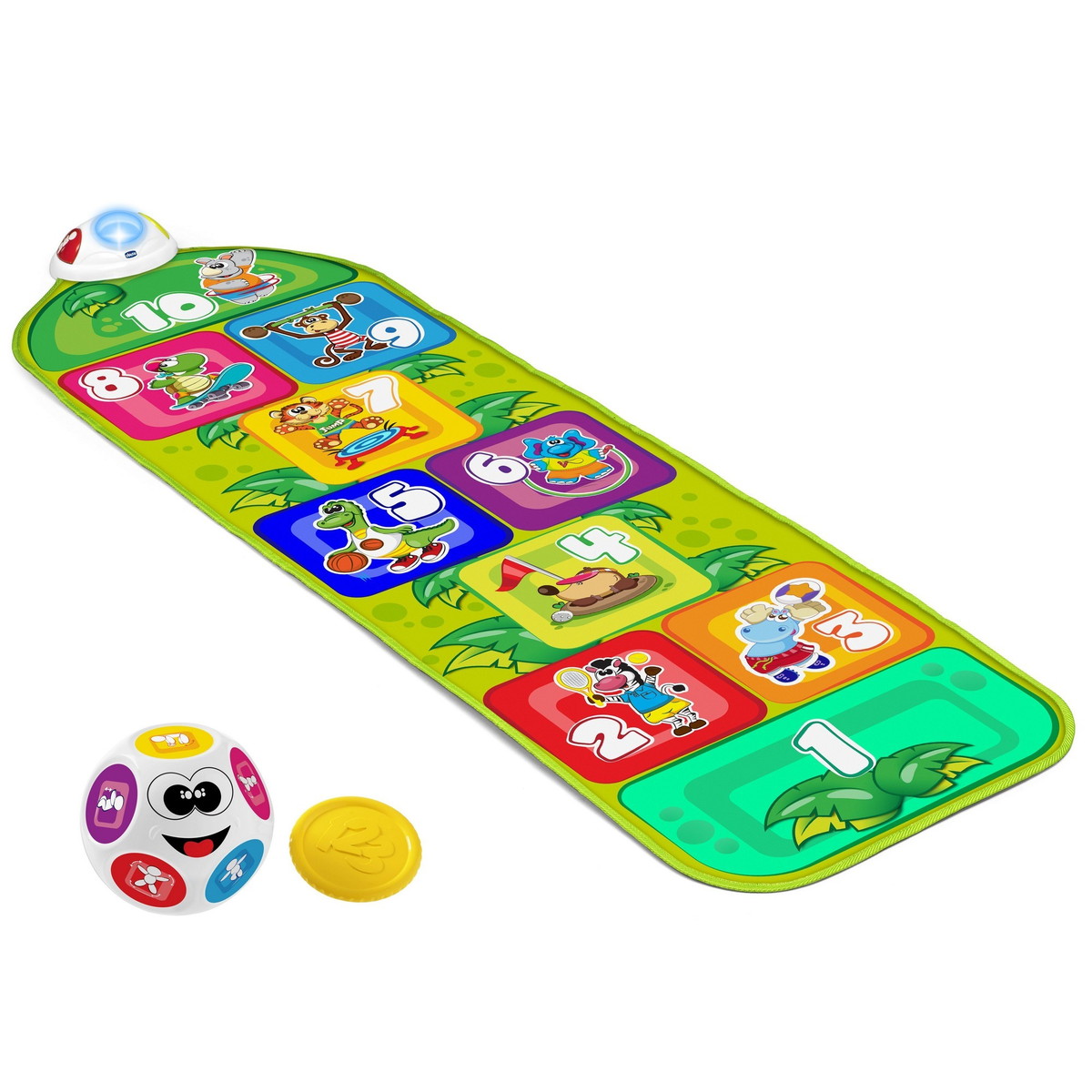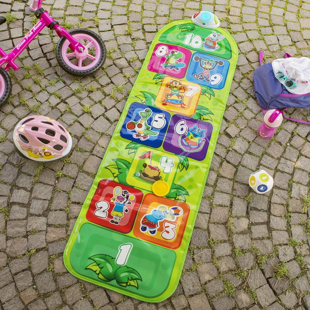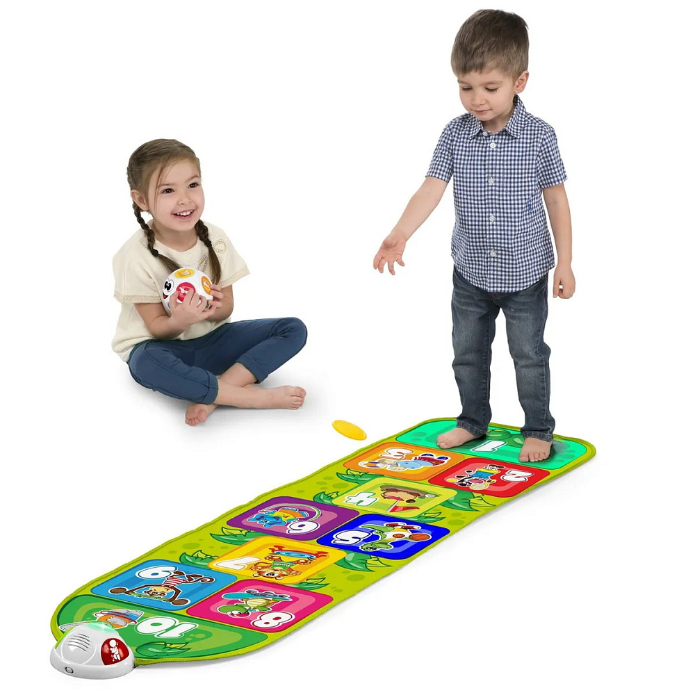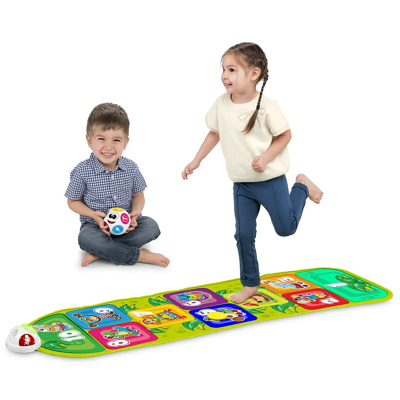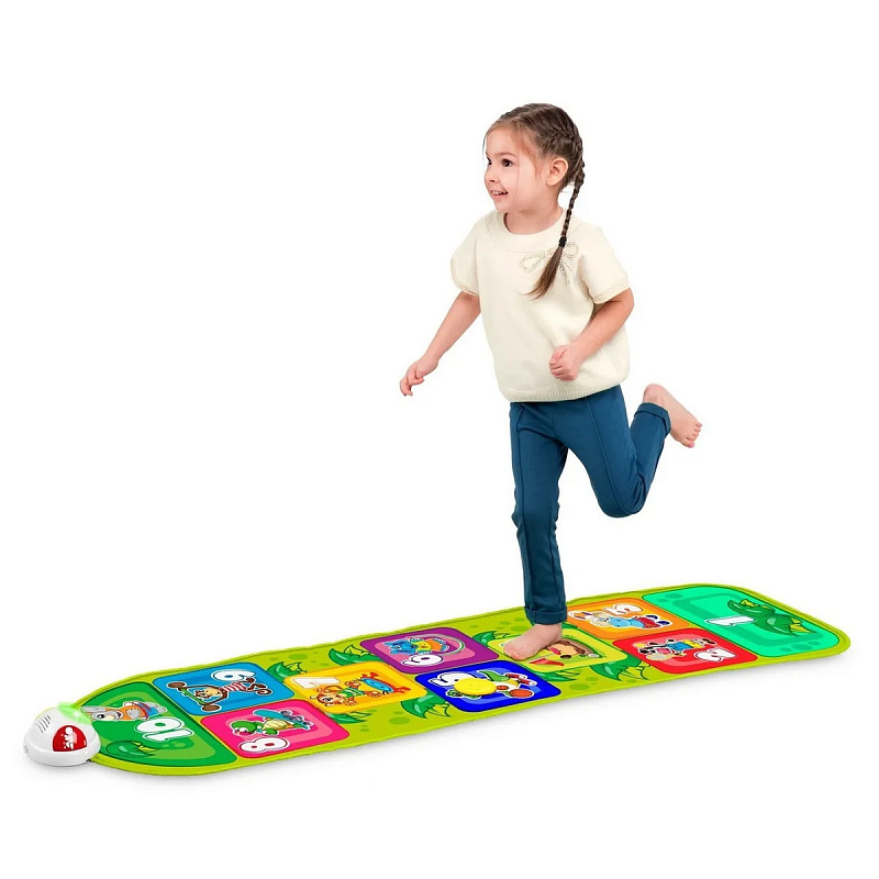 Когда ребенок прыгает на квадрат, активируются звуки и подсветка, указывающие, куда необходимо прыгнуть дальше.