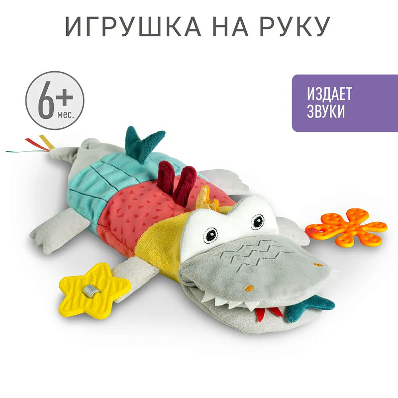 Крокодильчика можно надеть на руку, и малыш будет следить за движениями перчаточной куклы и внимательно слушать – это помогает укрепить связь между родителем и ребенком.