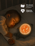 Музыкальная подборка и мягкий белый шум понравятся как детям, так и взрослым, обеспечивая расслабляющую атмосферу для глубокого и спокойного сна. Предусмотрены два уровня громкости, чтобы выбрать комфортное звучание. Игрушка выполнена из очень мягкого материала, приятного для объятий. Электронный модуль легко снимается, поэтому игрушку можно стирать в стиральной машине. Такой проектор станет идеальным подарком для новорождённых и малышей.