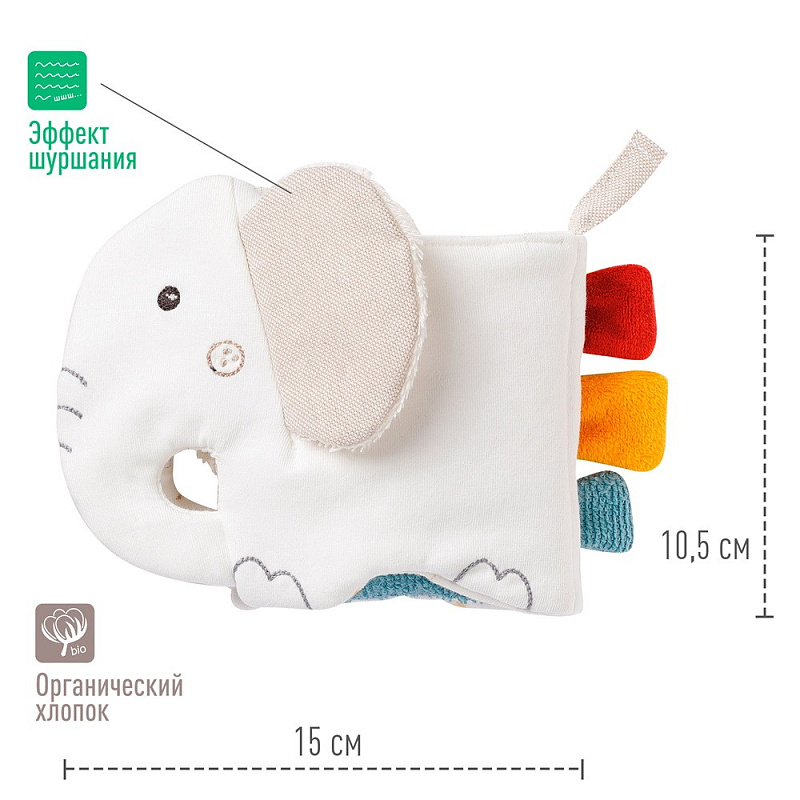 Мягкая игрушка-книжка с подвесом Fehn Слоник NATUR