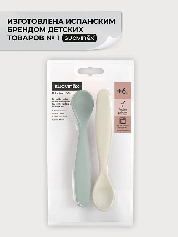 Набор детских ложек Suavinex для кормления, с длинной ручкой 308763 GREEN GRAY SНет оценокХарактеристики