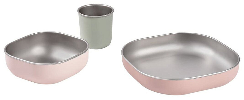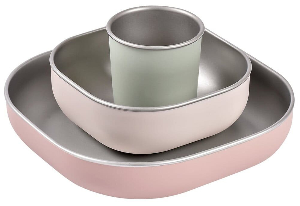 Набор детской посуды Beaba из нержавеющей стали с покрытием из силикона 913637 COTON CANDY