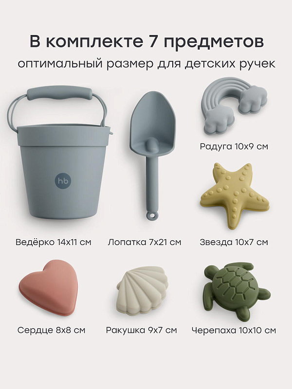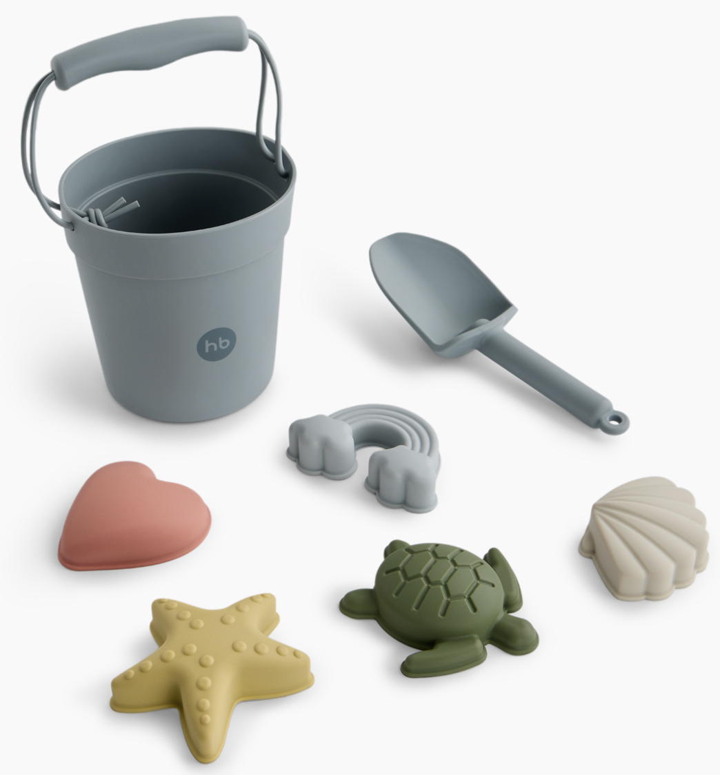 В набореФормочки - 5 шт., лопата - 1 шт., ведро - 1 шт., мешочек - 1 шт.