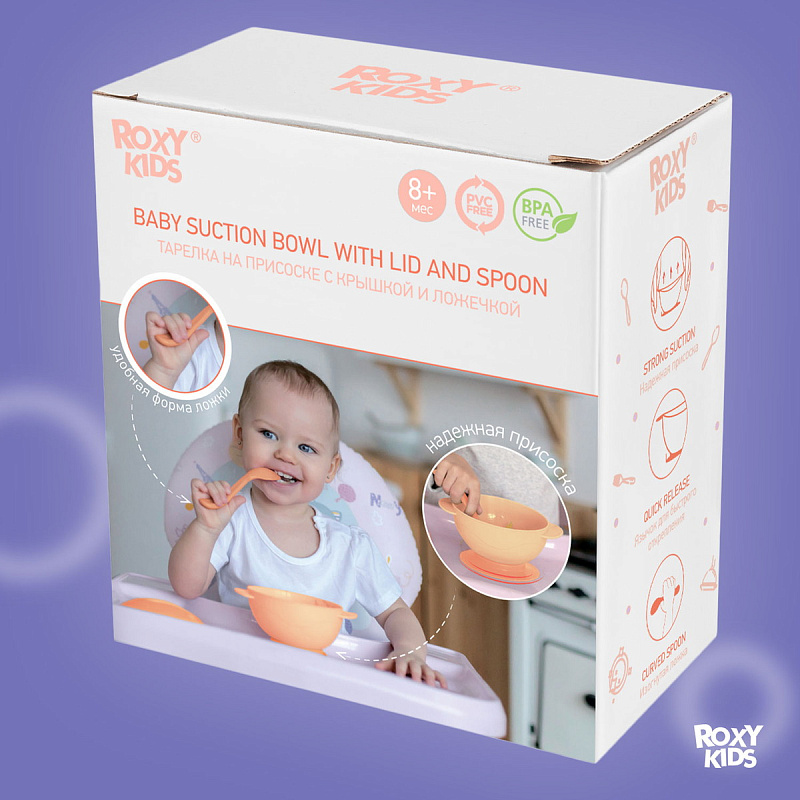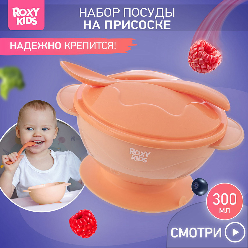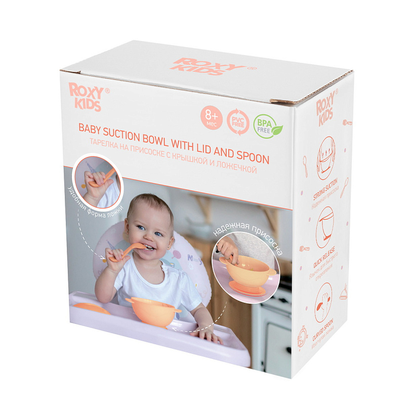 Набор для кормления Roxy-Kids тарелка на присоске, крышка и ложка RFD-003-O персиковый2 оценкиХарактеристики
