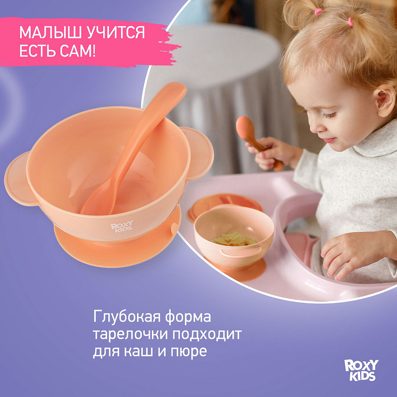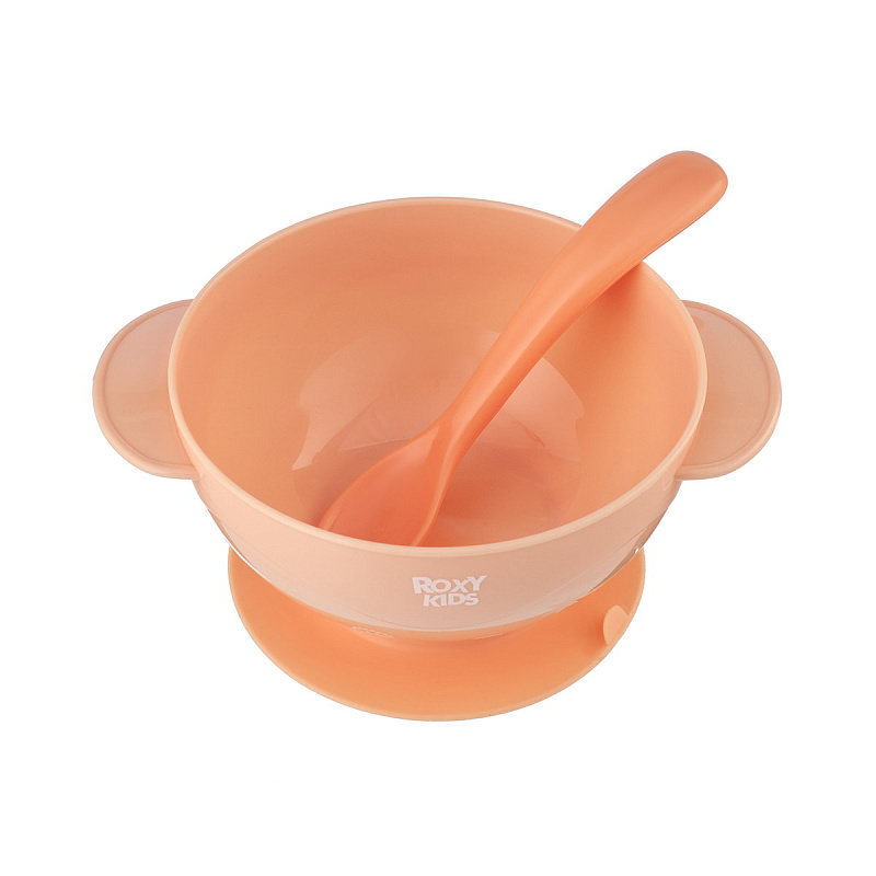 Набор для кормления Roxy-Kids тарелка на присоске, крышка и ложка RFD-003-O персиковый