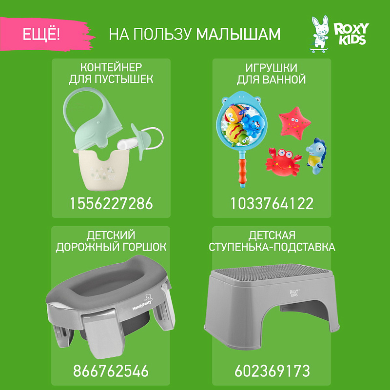 Детская тарелочка на присоске ROXY-KIDS поможет приучить ребенка к самостоятельному приему пищи и сделает процесс кормления легким и приятным! Тарелка легко крепится к столу или стульчику для кормления и останется на месте, даже если малыш совершит неосторожное движение рукой. Специальный язычок помогает легко открепить изделие от поверхности. Плоская и изогнутая форма ложки идеально подходит для малыша, который только учится пользоваться столовыми приборами. Крышка плотно закрывается для транспортировки, а ложка удобно крепится на крышку и не теряется. Большой диаметр и глубина тарелочки подходят для жидких каш и пюре. Изделие выполнено из высококачественного пищевого материала, имеет закругленные края и абсолютно безопасно для малыша!