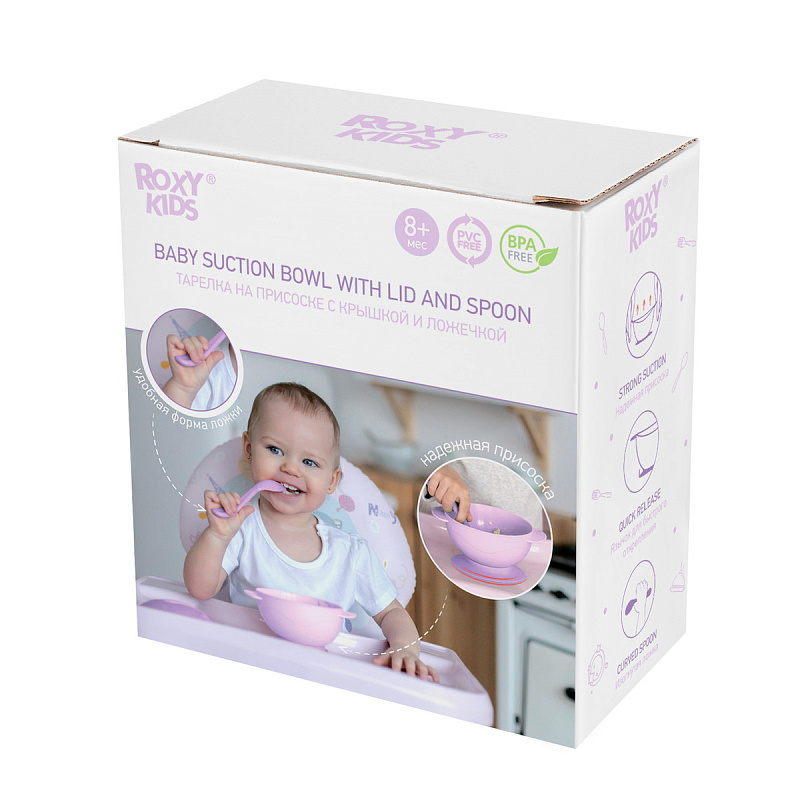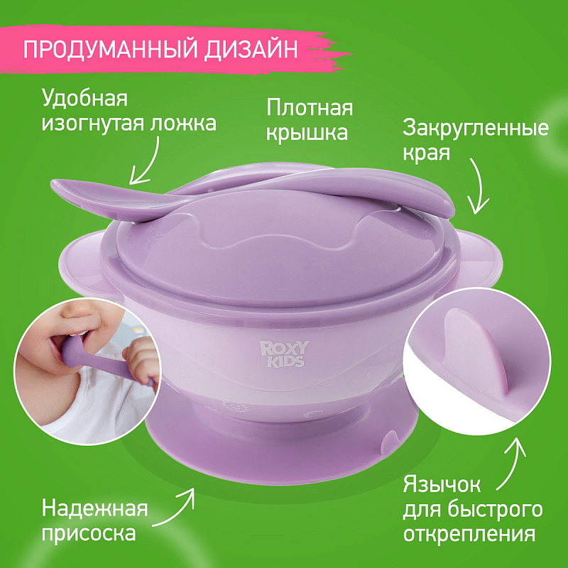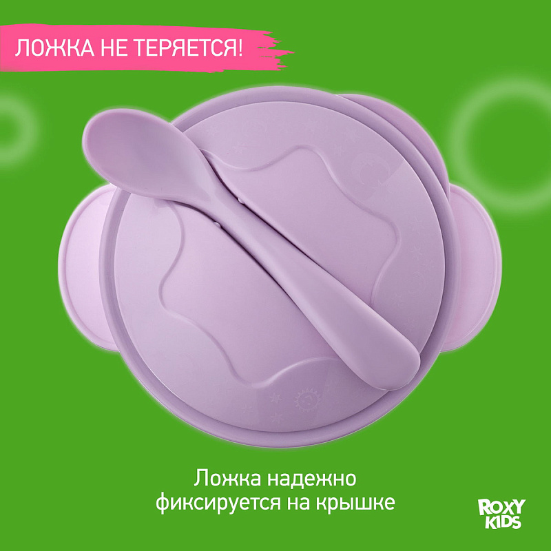 Набор для кормления Roxy-Kids тарелка на присоске, крышка и ложка RFD-003-V лавандовый
