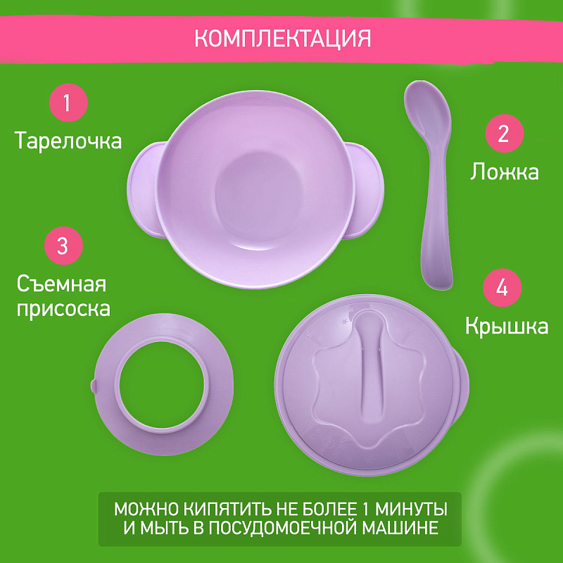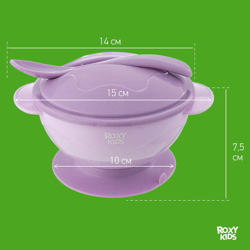 Набор для кормления Roxy-Kids тарелка на присоске, крышка и ложка RFD-003-V лавандовый2 оценкиХарактеристики