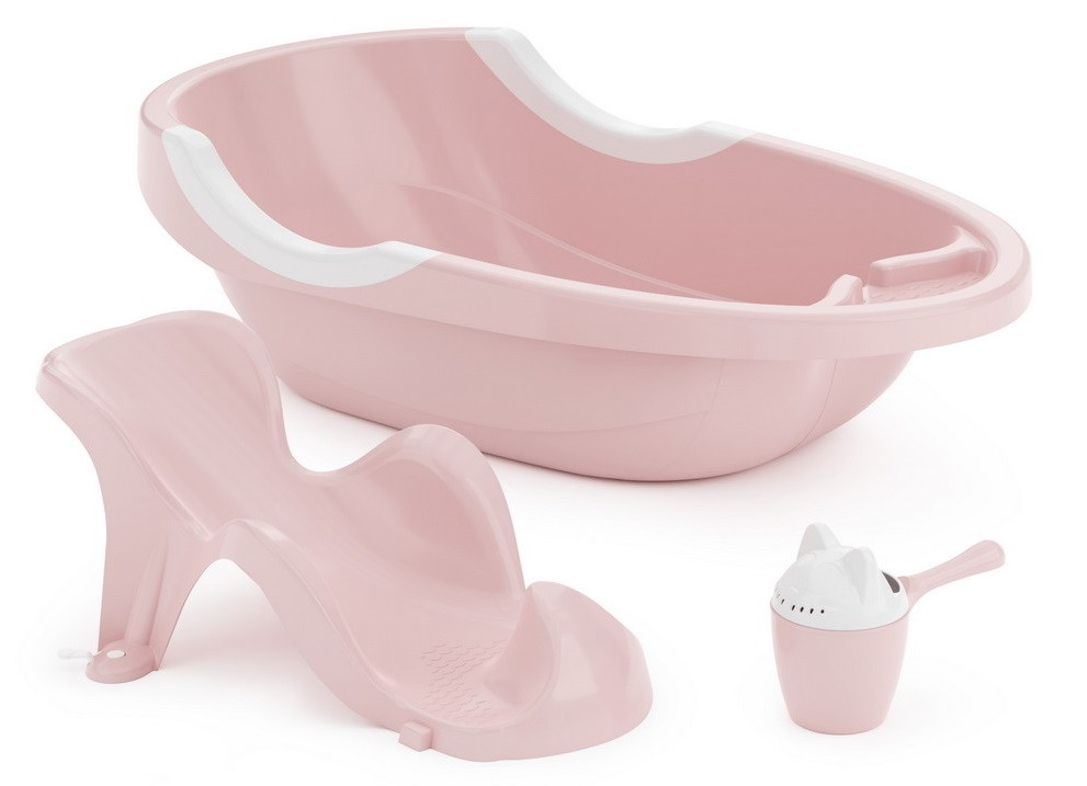 В детский набор для купания входит ванна (90.4*47.5*25.5 см), горка (50,5*20,5*25 см) и ковш 1 л (23,5*12,5*17 см). Все изделия изготовлены из прочного и безопасного пластика. Обтекаемые гладкие формы без острых краев обеспечат безопасность ребенка. Габаритная ванночка вмещает до 45л воды, что поможет создать атмосферу мини бассейна для малыша. Анатомическая форма горки обеспечит комфортное и надежное положение ребенка при купании. Наличие ковша облегчит процесс купания, а крышка-лейка в виде кошачьей мордочки, заинтересует любого ребенка и превратит водные процедуры в весёлую игру. Набор сделает процесс купания лёгким и приятным как для мамы, так и для ребёнка.