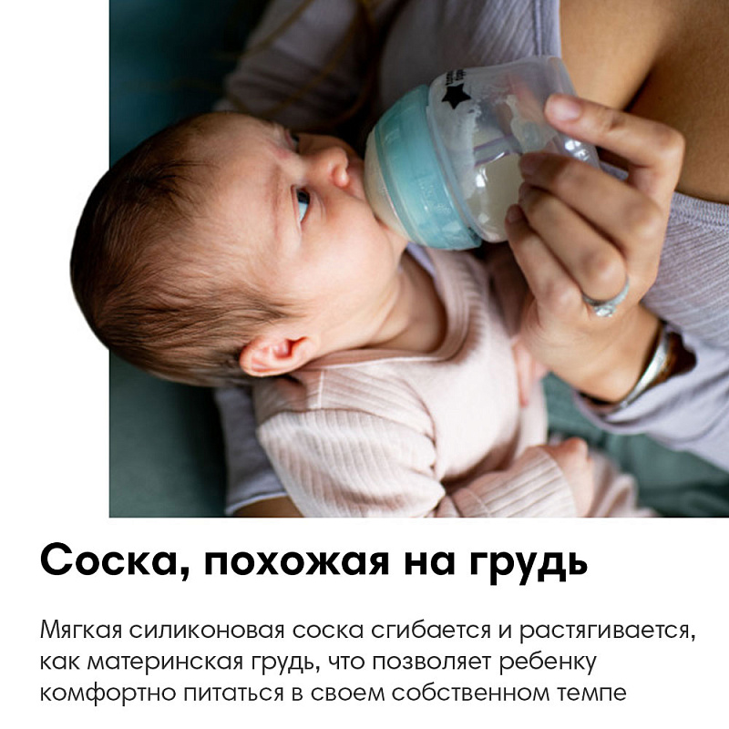 Вдохновленная мамами и разработанная экспертами, усовершенствованная детская бутылочка против колик имеет широкое горлышко и соску в форме груди, чтобы обеспечить вашему малышу максимально естественное кормление из бутылочки, а также дополнительную защиту от колик, предотвращающую дискомфорт, вызванный газообразованием.
