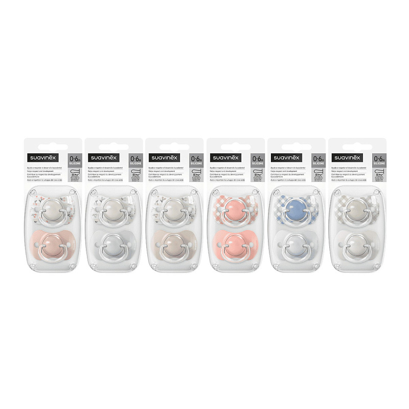 - Большой выбор пустышек Suavinex: различные цвета, дизайны и размеры для разного возраста.