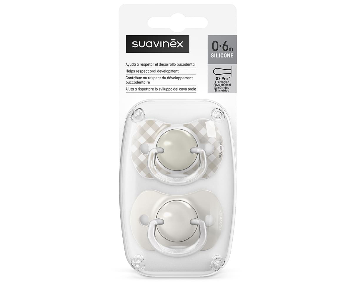 Пустышка Suavinex с силиконовой соской SX Pro физиологически правильно располагается во рту ребенка, не препятствуя правильному развитию ротовой полости и прикуса. Пустышка помогает удовлетворить врождённый сосательный рефлекс, успокаивает малыша и даёт ему чувство безопасности.