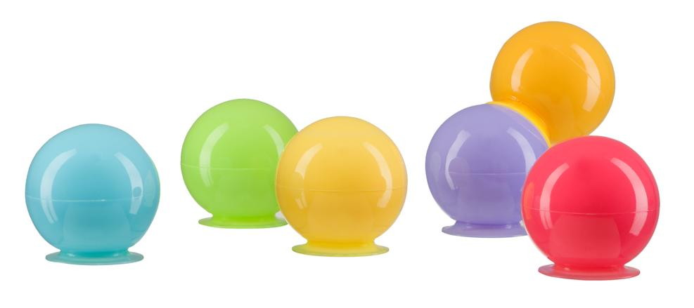 В набореРазноцветные пузыри в виде шариков на присосках