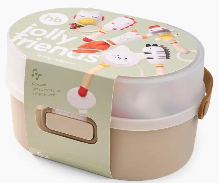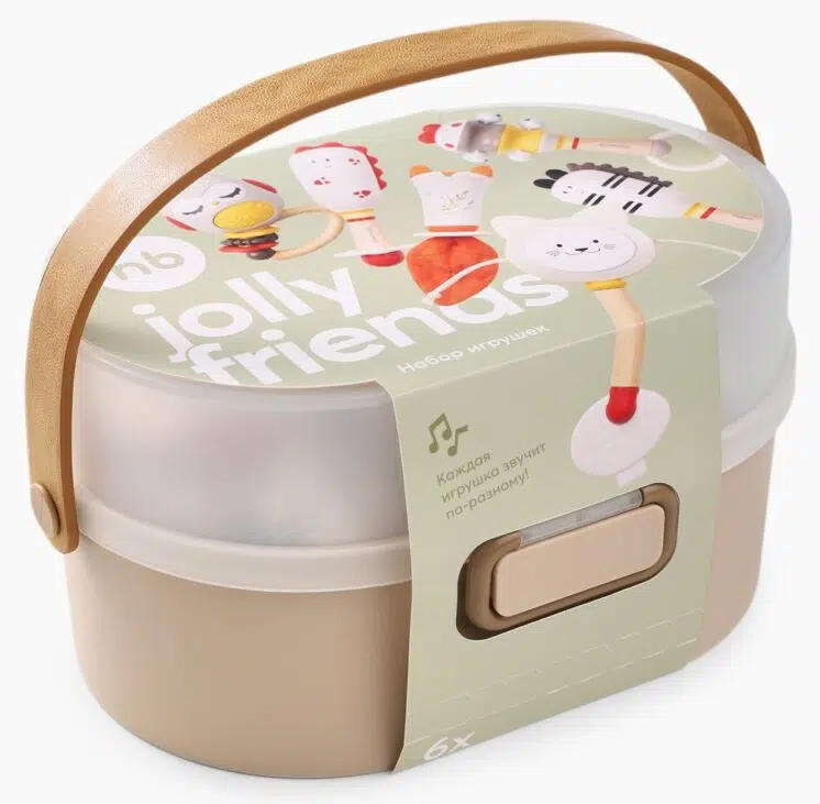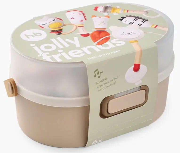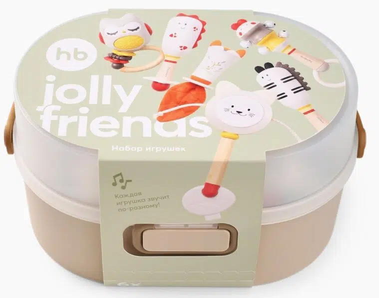 Набор погремушек JOLLY FRIENDS Happy Baby — лучший спутник малыша в познании мира. Игрушки разных форм и размеров сочетают мягкие и твердые материалы, безопасные для детских ручек, а яркие цвета стимулируют зрение. Силиконовые вставки выполняют роль прорезывателя, помогая при зубках и массируя десны. Погремушки развивают моторику, координацию и слух. Набор поставляется в удобном контейнере для хранения. Отличный подарок для новорожденных — безопасный, полезный и радостный!