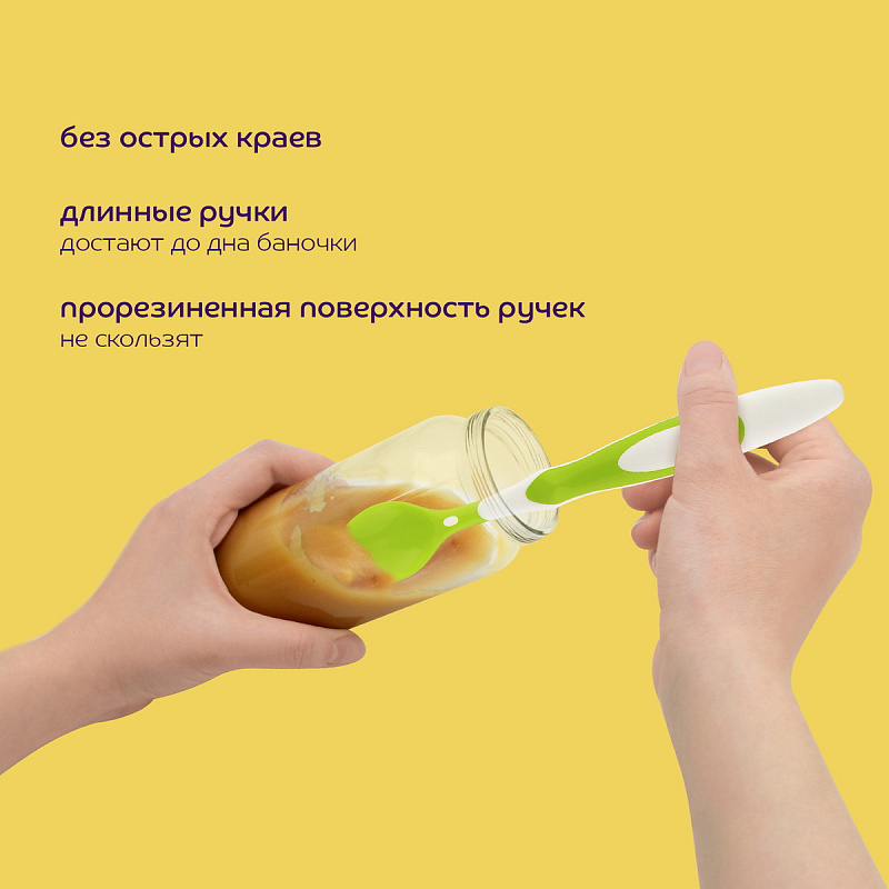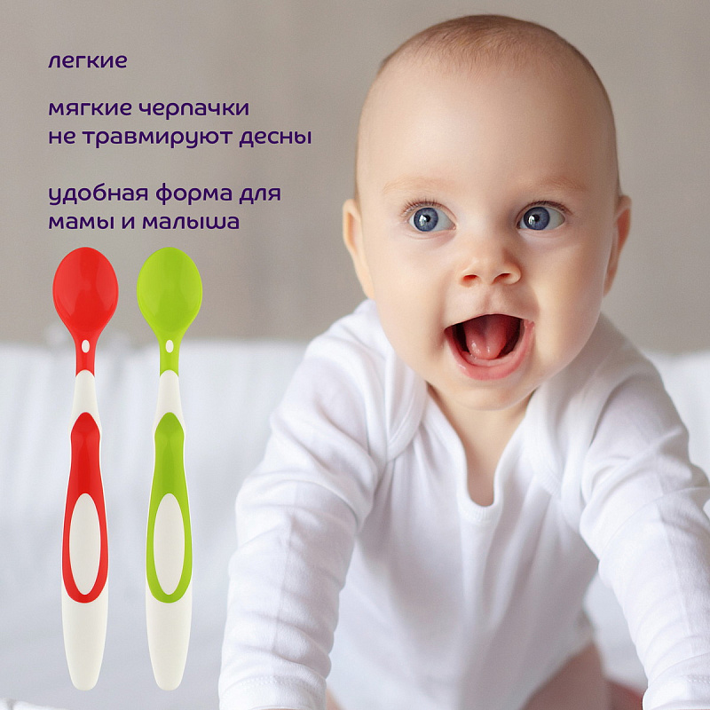 Ложки предназначены для кормления ребенка. Мягкий материал черпачков не травмирует десна малыша. Благодаря удлиненным ручкам кормящему легко достать питание даже со дна баночки. Изогнутые формы позволяют удобно держать ложечки во время кормления. А мягкие вставки на ручках обеспечивают антискользящий эффект.Подходят для пюре каш и супов.