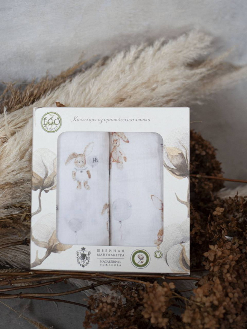 Набор муслиновых пеленок НаследникЪ Выжанова 120х120 2 шт Н08031-03041 ЧЗ зайка в песочнике