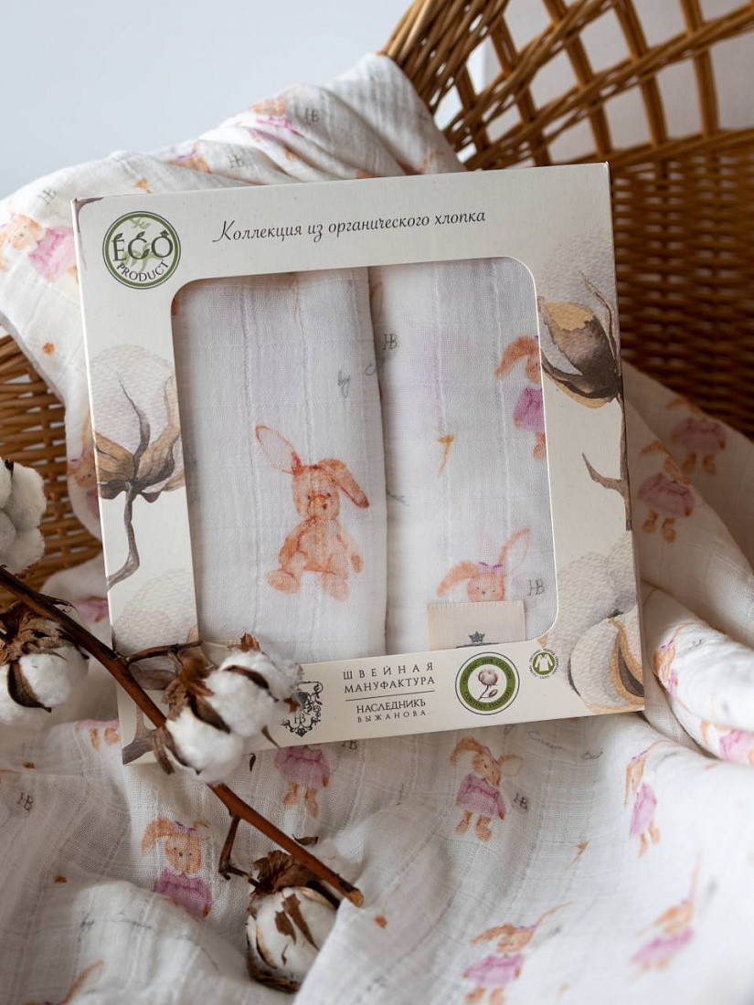 Набор муслиновых пеленок НаследникЪ Выжанова 120х120 2 шт Н08031-03041 ЧЗ зайка в платьеНет оценокХарактеристики