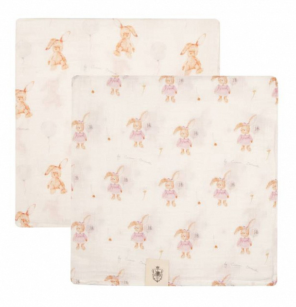 Набор муслиновых пеленок НаследникЪ Выжанова 120х120 2 шт Н08031-03041 ЧЗ зайка в платье