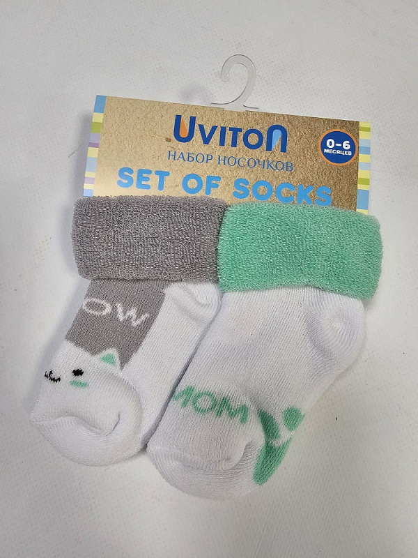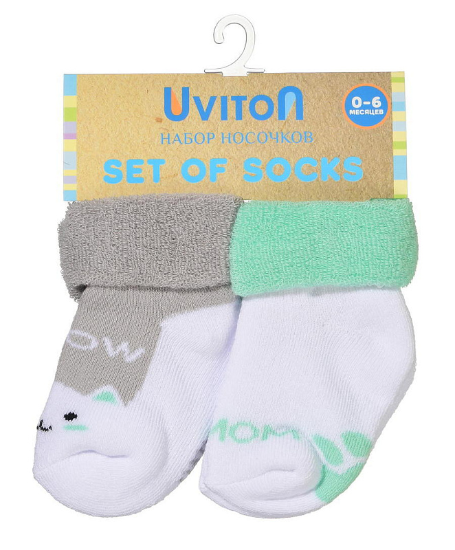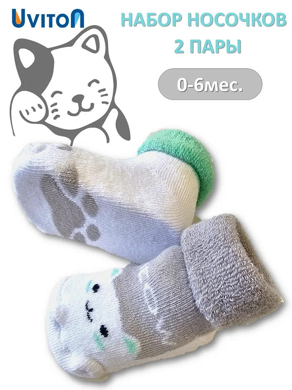 Набор носочков Uviton 2 шт махра Meow 0175 серый/мятный 56