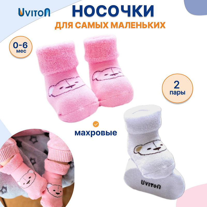 Мягкие и комфортные, махровые носочки для малышей (Uviton) изготовлены из натурального хлопка.
