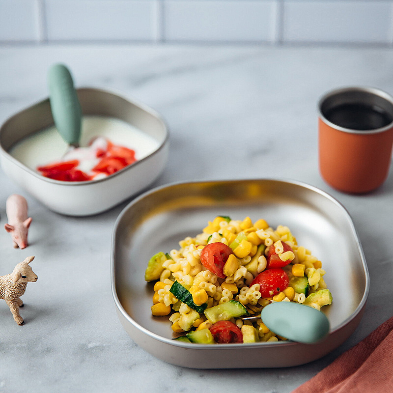 Набор детской посуды из нержавеющей стали BEABA станет отличным помощником в кормлении малыша. Каждый предмет из набора разработан из безопасных материалов с учетом всех потребностей малыша, который только начинает знакомиться с прикормом или уже осваивает навыки самостоятельного приема пищи.