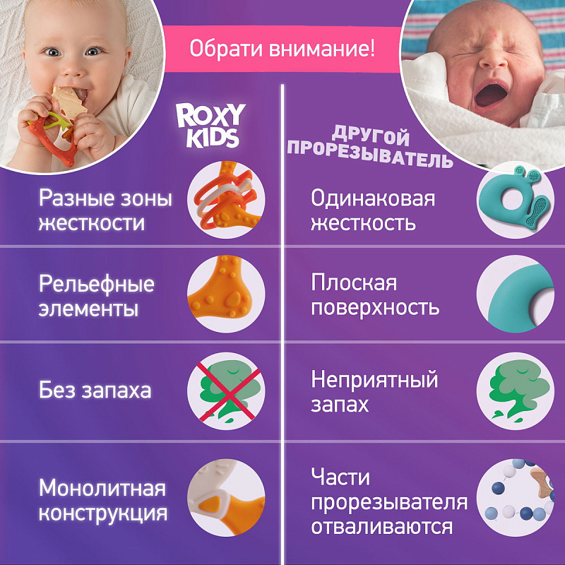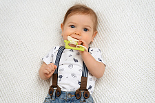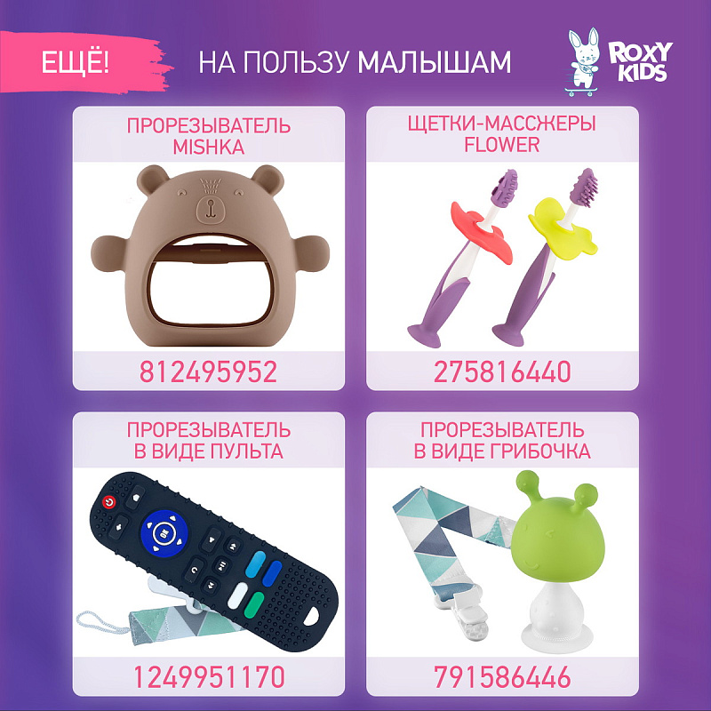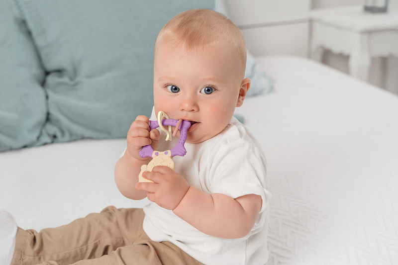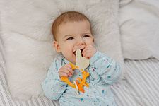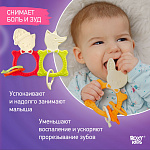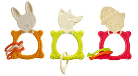 Набор прорезывателей в виде Зайчика, Котика и Лисенка – это забавные и милые помощники вашего малыша при появлении первых зубов. Прорезыватели помогают малышам избавиться от боли и зуда в период прорезывания, снимают воспаление и улучшают циркуляцию крови в прикорневой зоне. В конструкции грызунка учтены все стадии появления зубов у ребенка, а также их расположение. Элементы разной степени жесткости позволяют использовать изделие на протяжении всего периода прорезывания. Туловище персонажа с рельефной текстурой помогает массировать десны и стимулирует прорезывание нижних и верхних центральных резцов (с 3-х месяцев). Голова и ушки презназначены для массирования передних и задних моляров. Подвижные элементы прорезывателя развивают мелкую моторику рук. Еще одна отличительная особенность прорезывателей – это тело, сделанное в форме кольца, которое малыш сможет удобно держать. Прорезыватель сделан из безопасных гипоаллергенных материалов (термоэластопласта и полипропилена), так что ребенок может грызть его целыми днями. Соответствует стандартам безопасности товаров для детей.