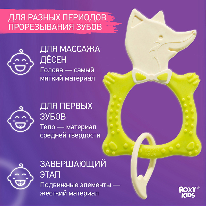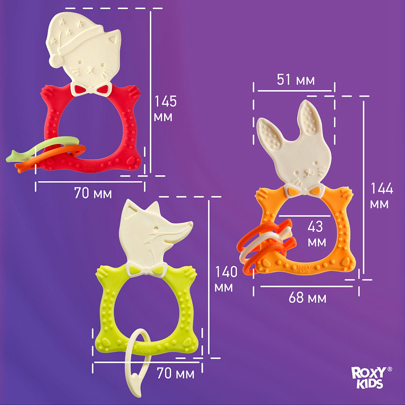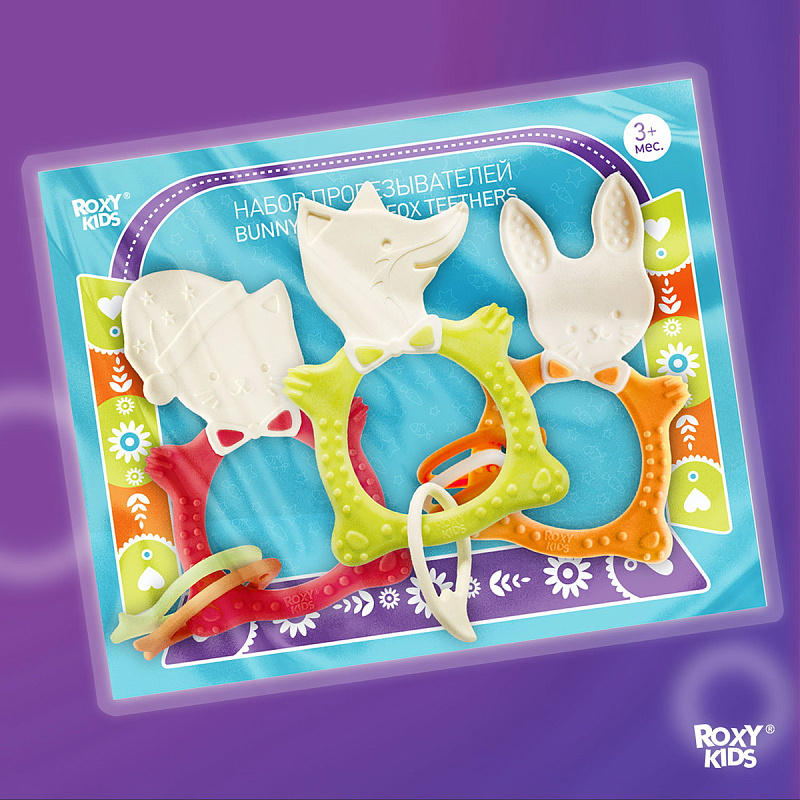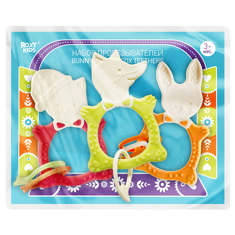 Набор прорезывателей Roxy-Kids Bunny, Fox, Meow RFM-001 горчичный/зелёный/коралловыйНет оценокХарактеристики