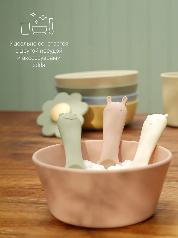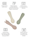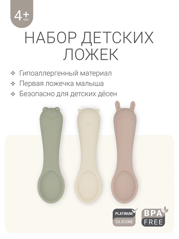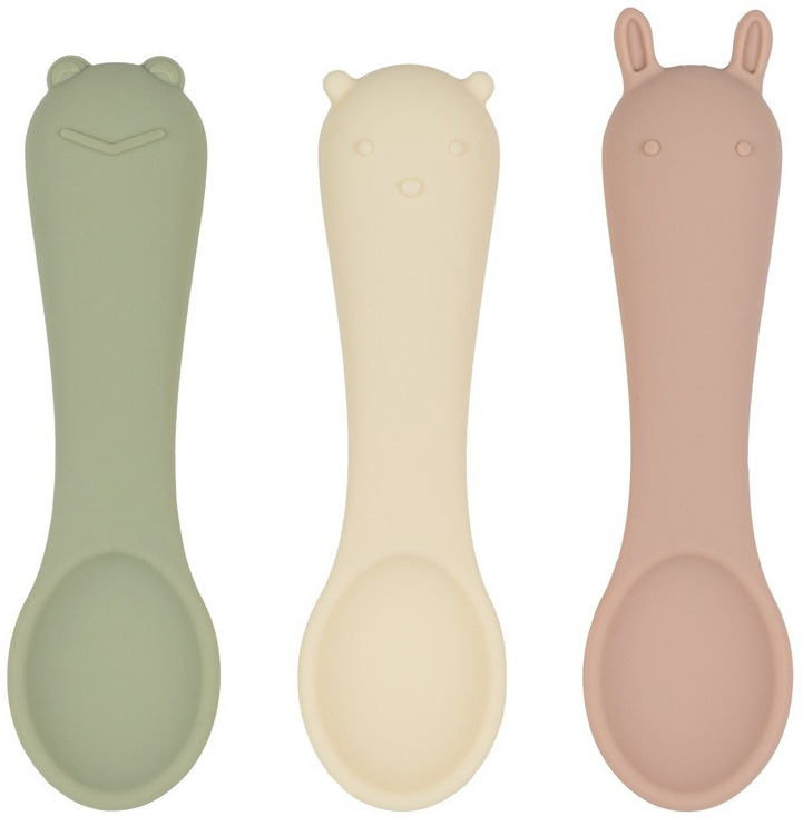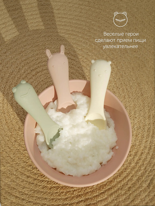 Оригинальный дизайн в форме забавных зверей привносит элемент игры в ежедневное кормление. В наборе — три ложки в трёх разных оттенках: шалфей, пломбир и пудра. Ложки гармонично сочетаются со всей посудой бренда по цветам и минималистичному дизайну.