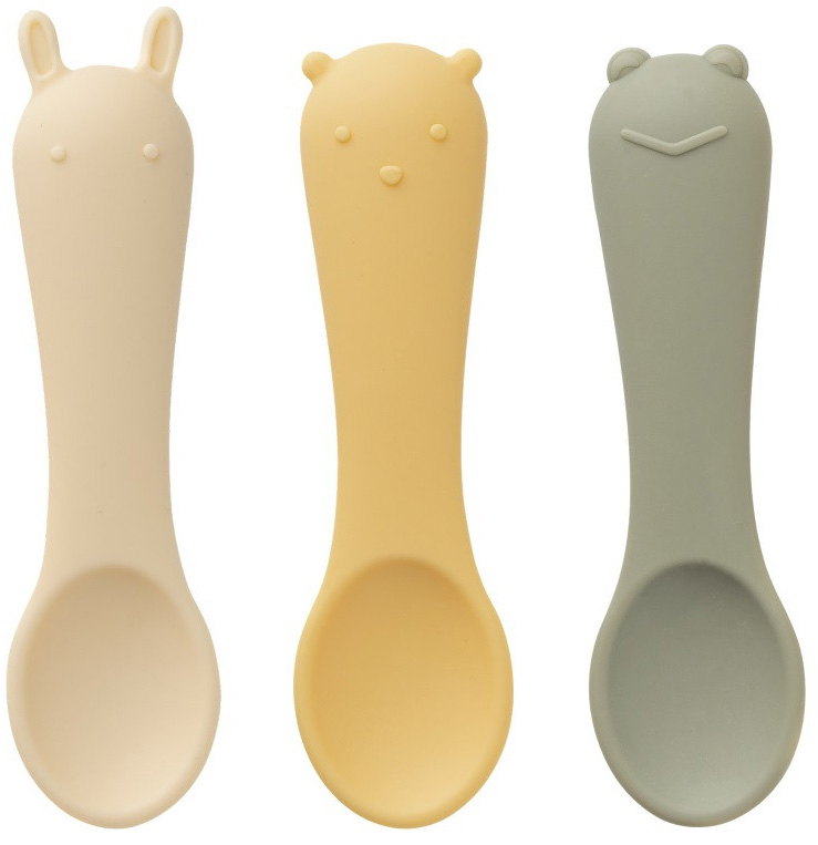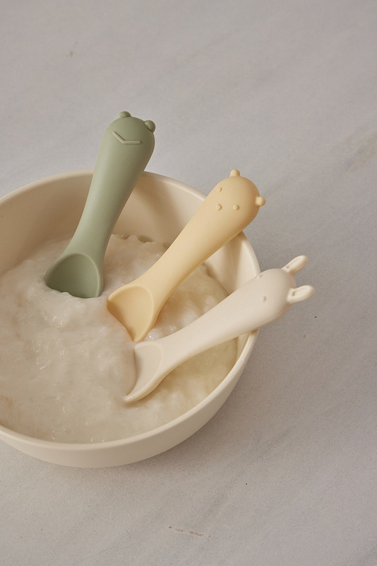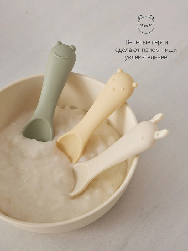 Оригинальный дизайн в форме забавных зверей привносит элемент игры в ежедневное кормление. В наборе — три ложки в трёх разных оттенках: шалфей, пломбир и пудра. Ложки гармонично сочетаются со всей посудой бренда по цветам и минималистичному дизайну.