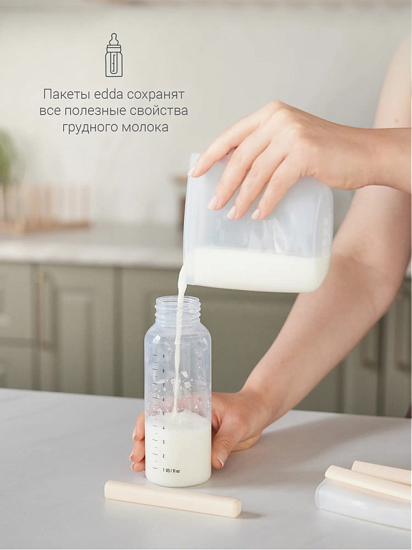 Пакеты для грудного молока edda выполнены из пищевого силикона премиального качества и закрываются на двойной герметичный замок.